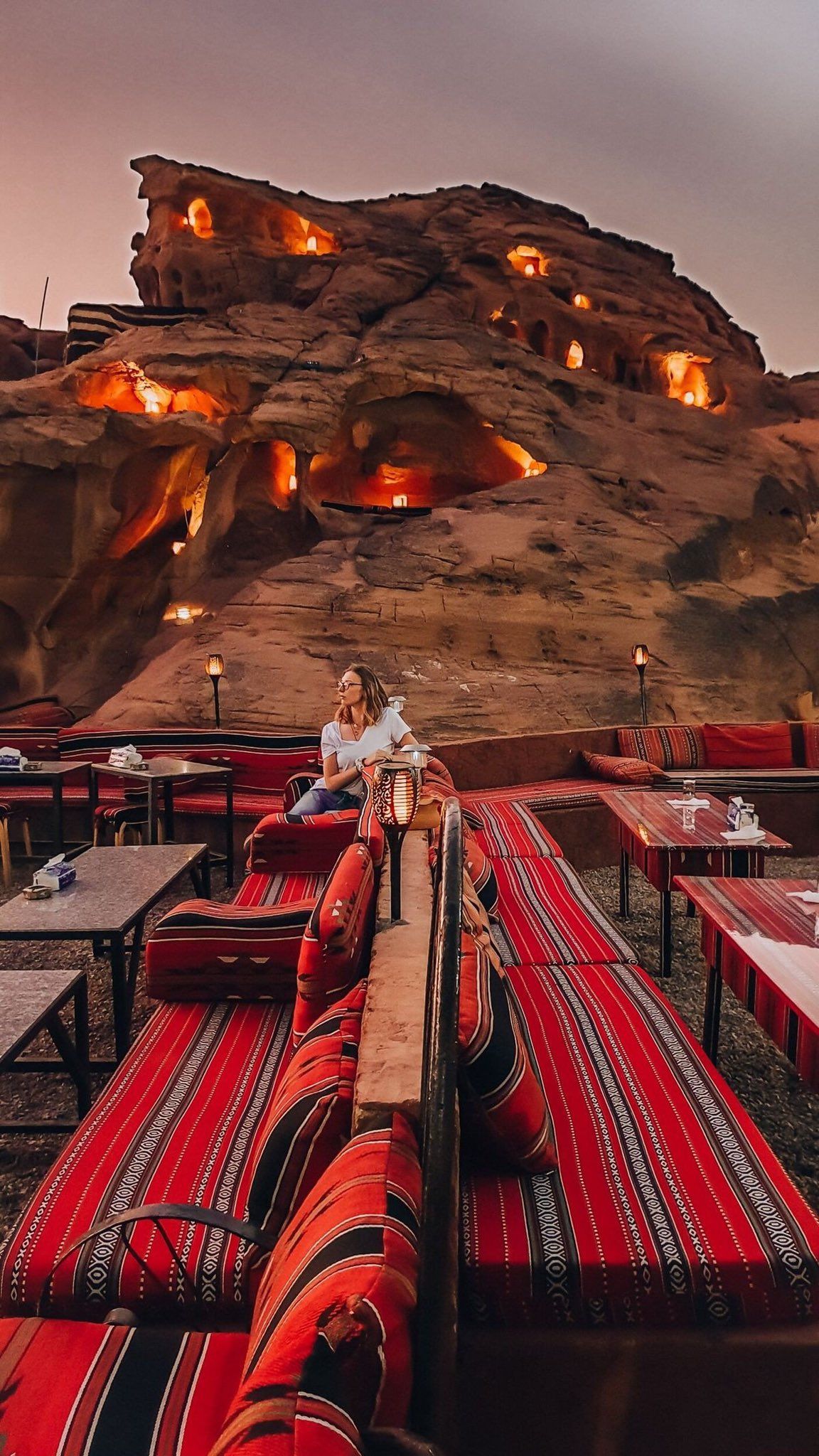 After exploring the site and some free time to wander, continue your journey to Wadi Rum (about 2 hours’ drive). Known as “Mars on Earth”, this desert offers dramatic landscapes of red sand dunes and sandstone mountains. Upon arrival, enjoy a 3–4-hour jeep tour to visit landmarks such as Lawrence Spring, Khazali Canyon, and Um Fruth Rock Bridge, before watching the sunset. End your day with a traditional Bedouin dinner and overnight stay at a desert camp under the stars.